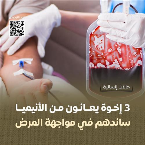 يعاني ثلاثة إخوة من فقر دم مزمن منذ سنوات، تتطلب حالتهم مراجعات طبية شهرية في مستشفيات تقع على مسافات طويلة من مقر سكنهم، مما يضاعف معاناتهم الصحية والمادية.
